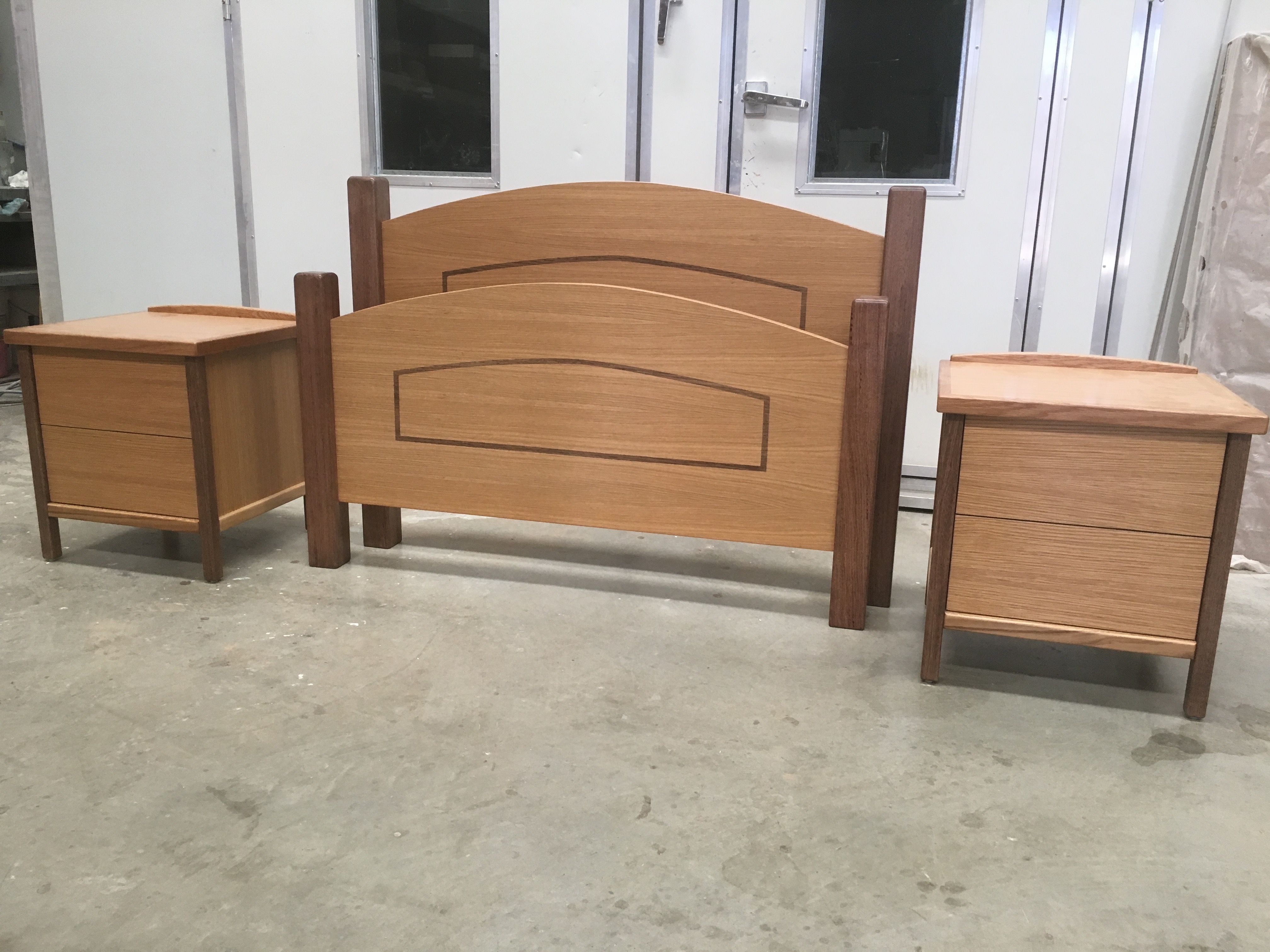 This new bedroom suite is complete with 2 bedside tables. Made from Tas Oak timber and American Oak Veneer, it's a quality king single bedroom suite. It comes complete with bed slates, just add your mattress. It is finished in Osmo's quality Polyx oil. $1000.00 inc GST