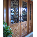These entry doors were a very challenging job, but also an enjoyable one. The angle details in the bottom section proved difficult but the end result was very satisfying to both us and our customer. The wrought iron inserts were specially designed and combined with the handle provided a very unique and stunning feature to the home. The doors have been finished in a 2 pack lacquer specially designed for exterior use.